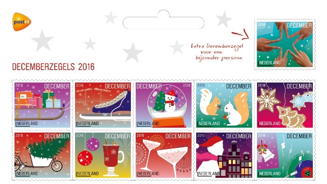 Voor het basis supplement* 2016 worden de 11 decemberzegels uit het velletje met 21 decemberzegels