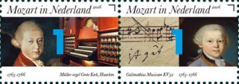 Voor het basis supplement* 2016 worden de zegels uit het velletje “Mozart in Nederland 1765-1766” op onderstaande wijze afgebeeld: