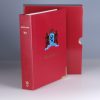 Rode band Beatrix Euro 2. Formaat 280 x 315 mm. 20-vaks transparante bladen van 240mm x 300mm en zwart tussenblad met zilverbedrukking.