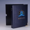 Blauwe of bordeauxrode band Juliana 1948-1980. Formaat 280 x 315 mm. 20-vaks transparante bladen van 240mm x 300mm en zwarte voorbedrukte tussenbladen (zilverbedrukking).