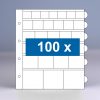 100 transparante, zuur- en weekmakervrije muntbladen met schuifjes: mixblad. Bladformaat 210mm x 260mm.